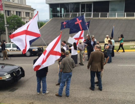 The primary local media story was published by the Montgomery Advertiser. Activists carried Alabama state flags along with the flag of the Kentucky Orphan Brigade, which fought for the Confederacy during the Civil War. Michael Hill, chairman of the League of the South, said the protest was a demonstration of support for the idea of Christian marriage. He also disputed the SPLC's designation of the League of the South as a hate group designation, explaining "We love the South. We love Southern tradition. We love family."