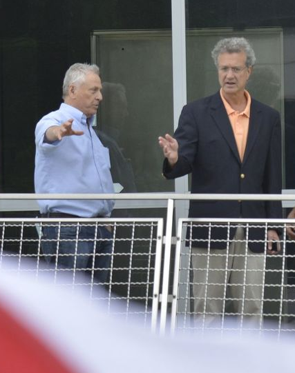 | Morris Dees (L) and Richard Cohen (R) looking down on the rally |
